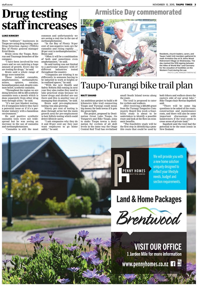 Article from Taupo Times 13 November 2015 – by Matt Shand