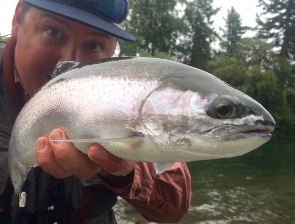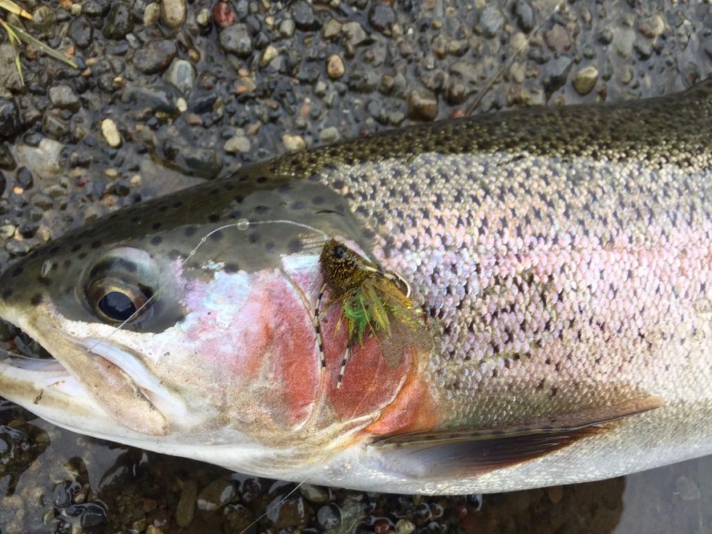Matt was forced to retire to the very run-out tail of the pool (where I never spot any trout )and immediately landed two good Rainbows on his Cicada rig… It gets worse. He returned there this morning and landed another.