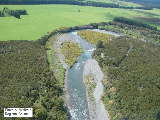 (Aerial view looking up river over Admirals Pool to Cicada Pool at top of photo)