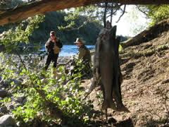 From the high bank the migrating trout make their way up river ever so slowly hard against the bank. That is Spot 3.