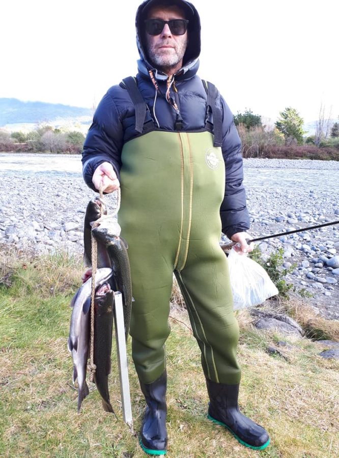 “Action on the Tongariro, but I am being totally and absolutely outfished by my son, who has been catching 10 to my two.
