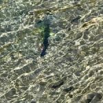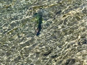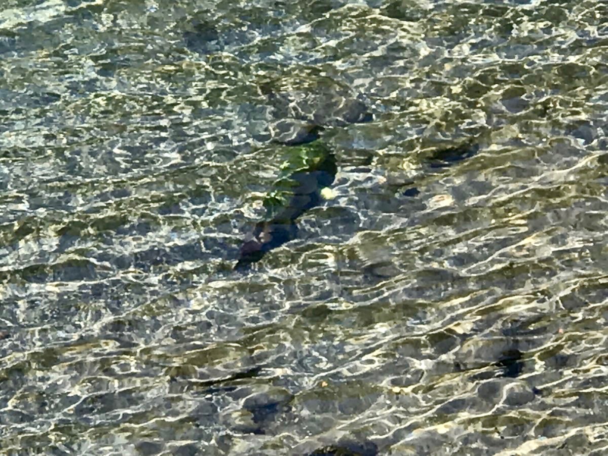 Patiently waiting for an angler was this massive trophy trout. Just off the seam of the current above the bridge the bright iridescent colours were absolutely stunning. This was about 1 pm and the sun was glinting off his/her back. Other tourist walkers also stopped to admire the sheer size of this massive fish waiting in the shallows.