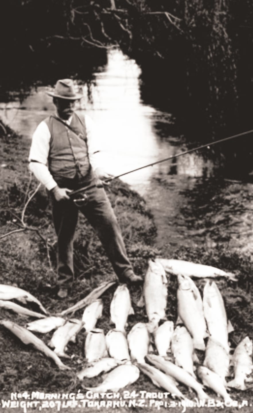 A typical catch was that of Charles C. Percival of England, who between 26 March and 25 May 1911 caught 354 fish weighing 1376kg, the largest 6.8kg. Then in about 1912 the size and quality of the trout began to decline rapidly as the population of the native fish, the koaro, collapsed under the predatory pressure.