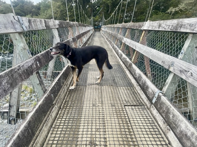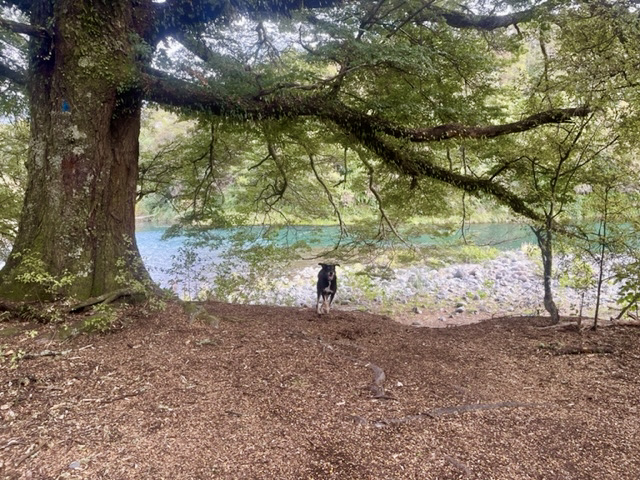 We should also mention that Juno is suitable for inmates wanting to take a dog “walkies” along the river tracks. The photo below was taken last May when a guest was delighted to replace me for the daily fix. I suspect Juno took her walkies.