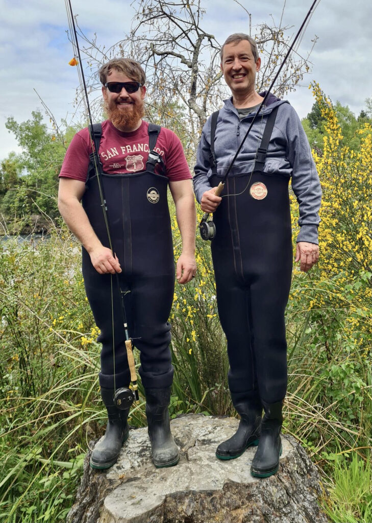 It is always a thrill to see new fishos wanting to try casting. Many thanks to Aimee for photos of Hayden Buchanan & Mark Venter on their first-ever experience trout fishing in the Tongariro Island Pool. On Saturday they tramped in the National Park completing the loop track to Taranaki Falls and continued to Tama Lakes. But the fishing photos are much more interesting… followed by photos of their fishing guide. When they return with more photos of Juno than the anglers then what does that tell us? I am not sure who enjoyed it the most…