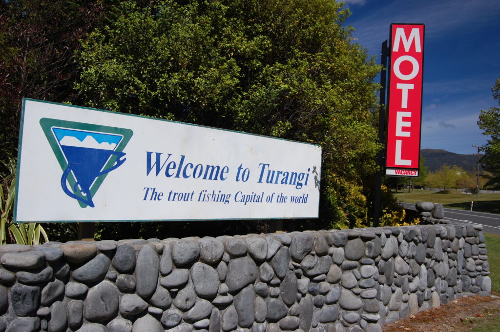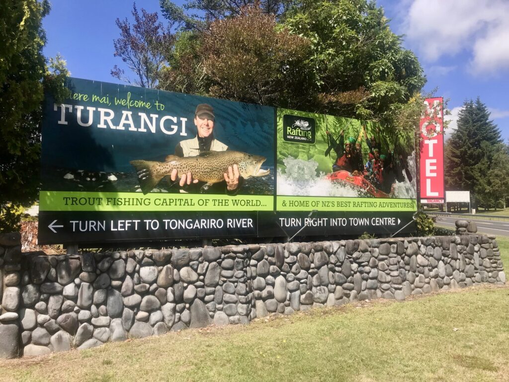 In 2010 that was replaced by the “Welcome to Turangi – The Trout Fishing Capital of the World” sign, after Toe-Paw Council dismantled it from each main road entrance to Turangi. Their reasoning was they had to update the logo… but the real reason was to rebrand Turangi as the “Source of the Lake”.