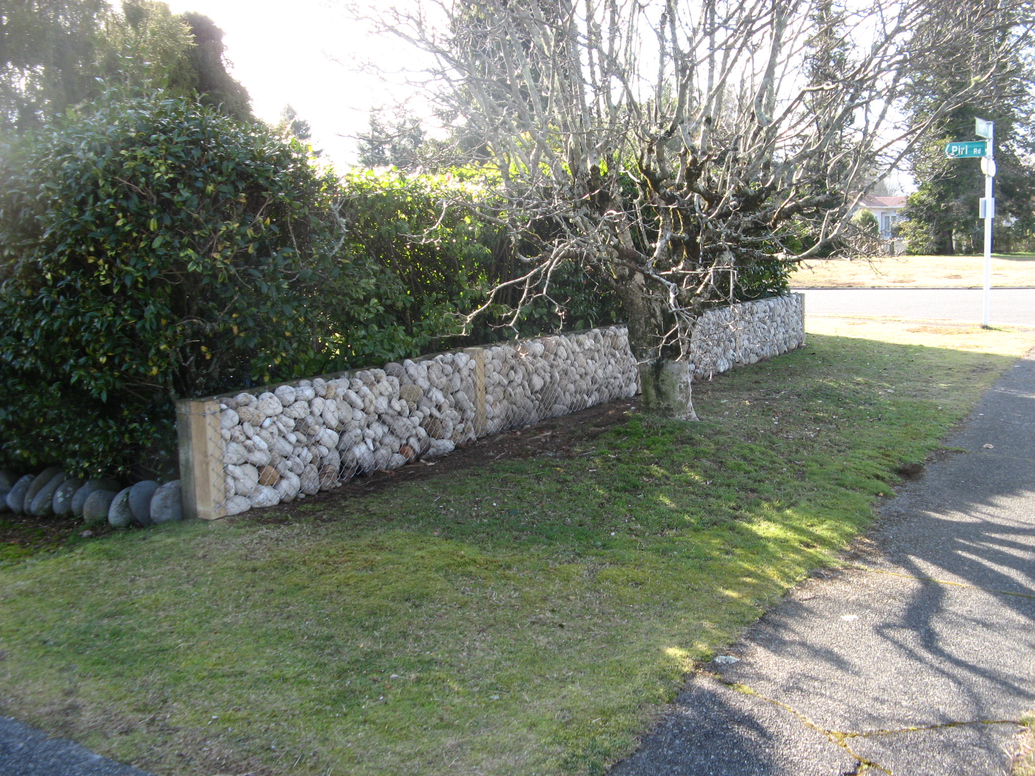 The next photos illustrate the changes including the stone entrance wall, new signs, and new pumice wall along SH1 continuing around Piri Road to Taupahi Road entrances.