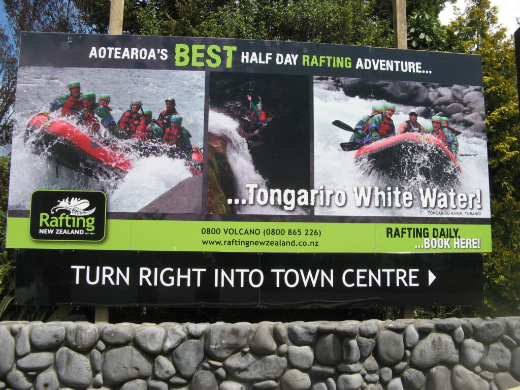 The Toe-Paw Council claimed that NZTA had objected that the wording at the base of the sign could be mistaken for one of their signs! We asked for proof from NZTA but never received any letter of complaint. Have you ever seen a road sign from NZTA featuring a raft and a huge trout? In other words, they lied…