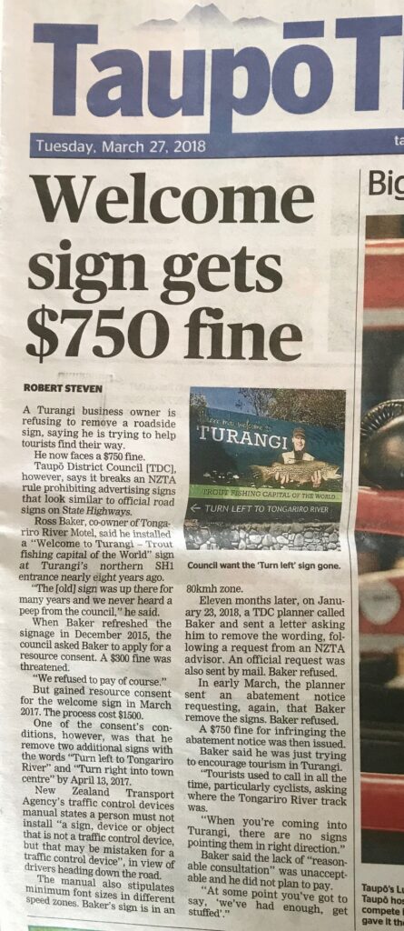 It is still bewildering why they picked on TRM when there are many signs throughout Turangi that do not have resource consent.