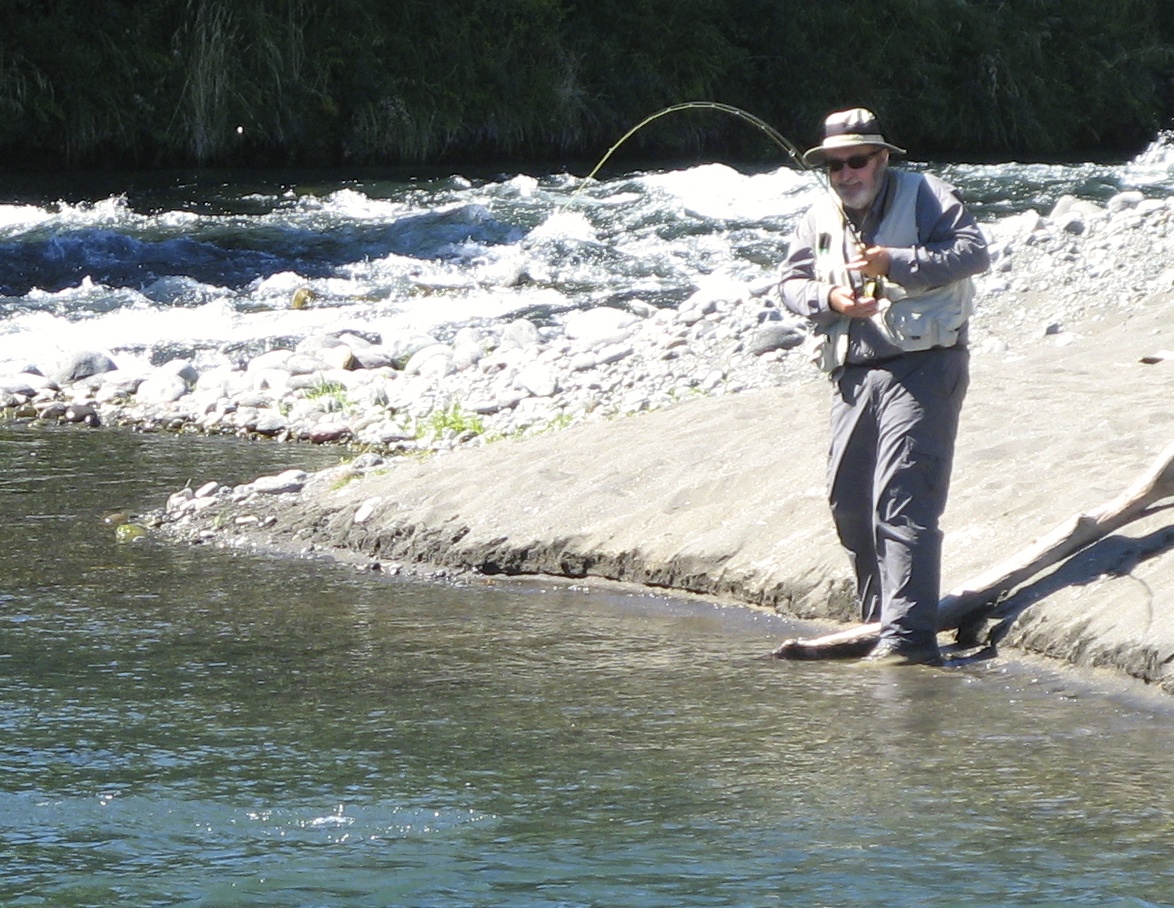 As usual the trout were all lined up in military fashion as shoal fish do just off the lip of the sand bank (beyond the over-flow river bed) while our brave angler was just daintily drifting his nymph down over them.
