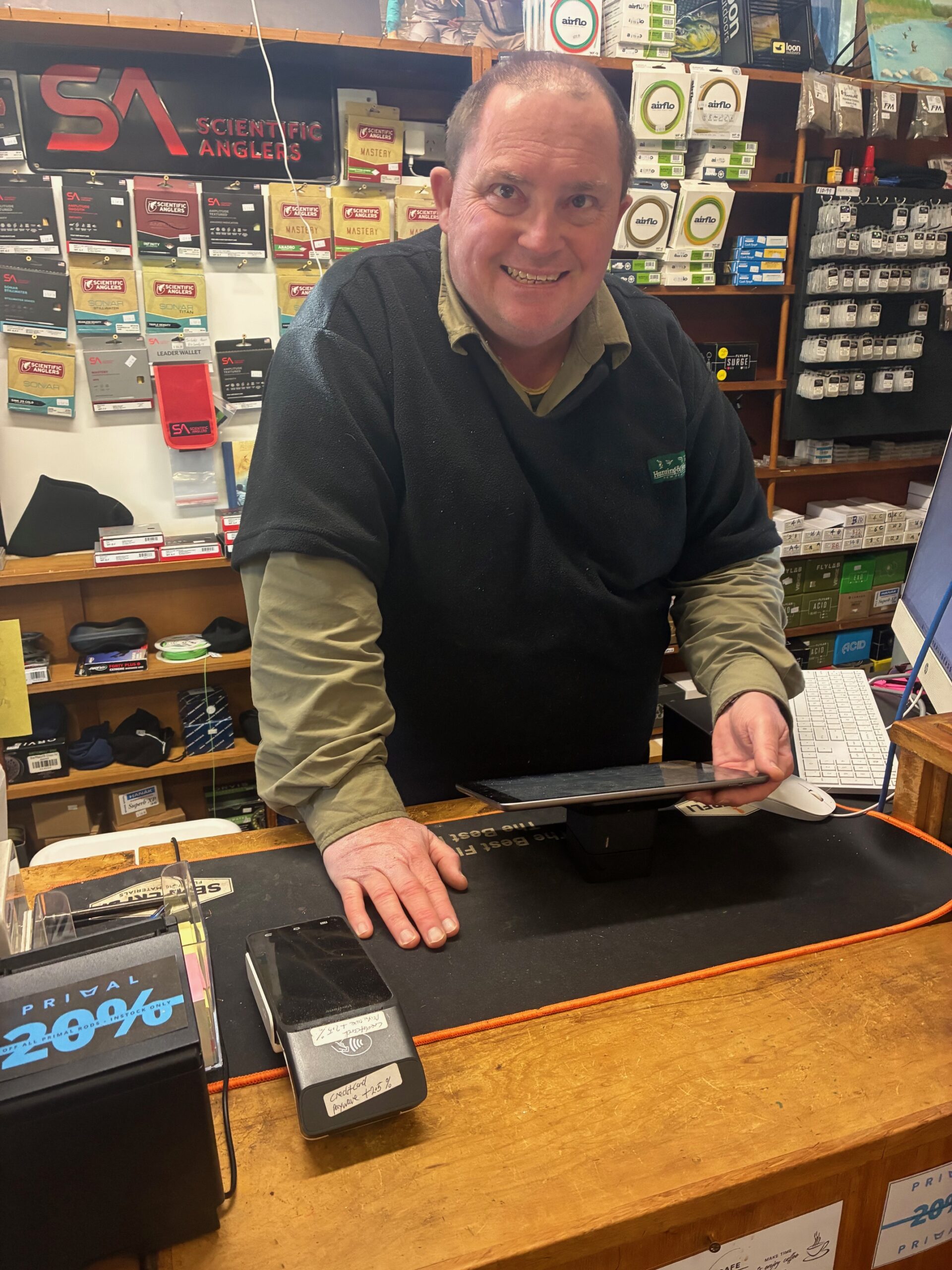 Creel Tackle Shop have been teasing customers with the change in operators, and in particular the identity of their new shop staff. So we popped down to get his photo. Normally, retail customers would not be concerned, but as explained in the TRM blog dated June 28 below, Creel, is the oldest trout tackle shop in NZ. It deserves its special, historic, and unique reputation among all Tongariro fishos. Tongariro anglers deserve much more than the usual retail staff robots, requiring comprehensive technical advice on fly fishing gear with information about which Tongariro River pools are performing and which flies are working, etc. To learn it all takes endless patience and time. You cannot buy that. Particularly after three recent floods, visiting anglers need to get updated on local conditions and to learn of any changes. Prospective angler customers look for that essential “hands-on experience” in tackle shops, and in Turangi they are naturally inquisitive about any change in ownership. That is why the photo below is so relevant with Steven and the previous operator, Brian Scott (aka Scotty) on duty at Creel over ten years ago.