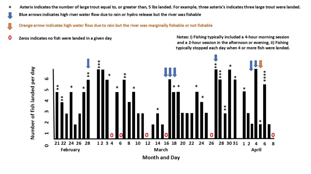 Of interest for comparison, below is TRM’s analysis of the Tongariro River catch rate by one tourist angler during the 2025 summer months…