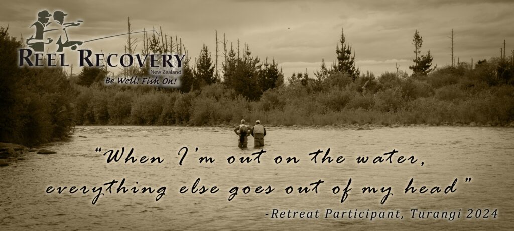 REEL RECOVERY have been arranging the meeting here at TRM once a year to provide a group of cancer patients with an experience for them to spend a day fly fishing on the mighty Tongariro River. The supporting cast of a fishing guide for every angler plus accommodation with meals provided and semotional support is also a key ingredient to provide a successful break from the pressures of living with cancer. Below is the similar retreat about five years ago, in 2020.