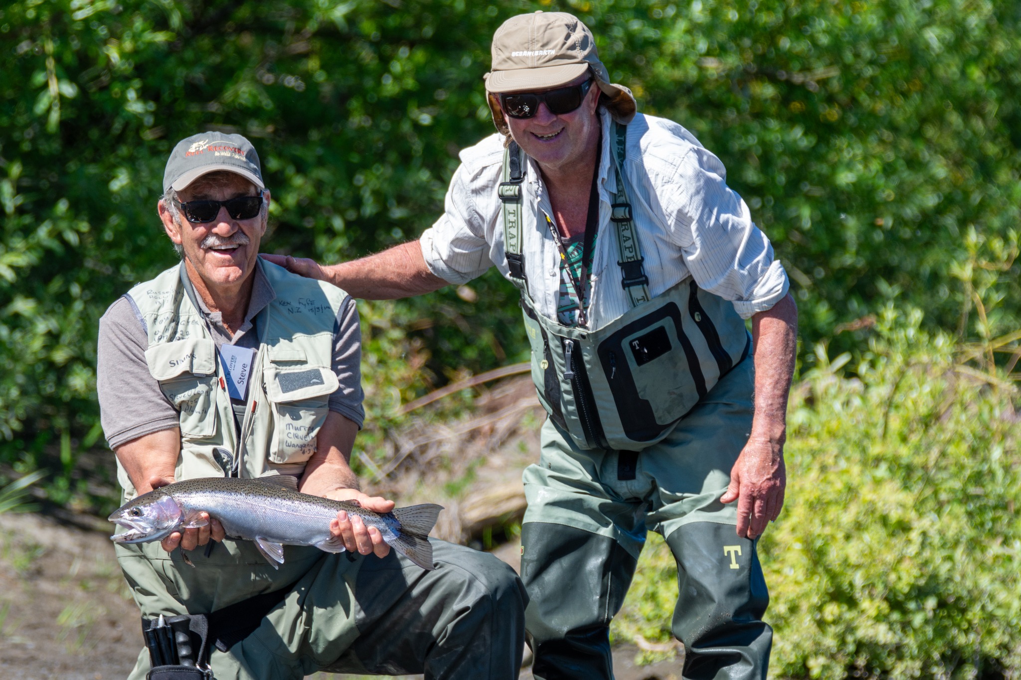 We cannot recount all the individual experiences so have picked on one guide, Paddy Walsh, who was paired up with Steve from New Plymouth. Steve had never been fly fishing or cast a line in his life so that challenge alone was a “big ask”. In total they hooked up and landed six Rainbow trout although the numbers and size of the trout are immaterial. It was more about the thrill from the experience. At the end of the day you would never see so many happy faces.
