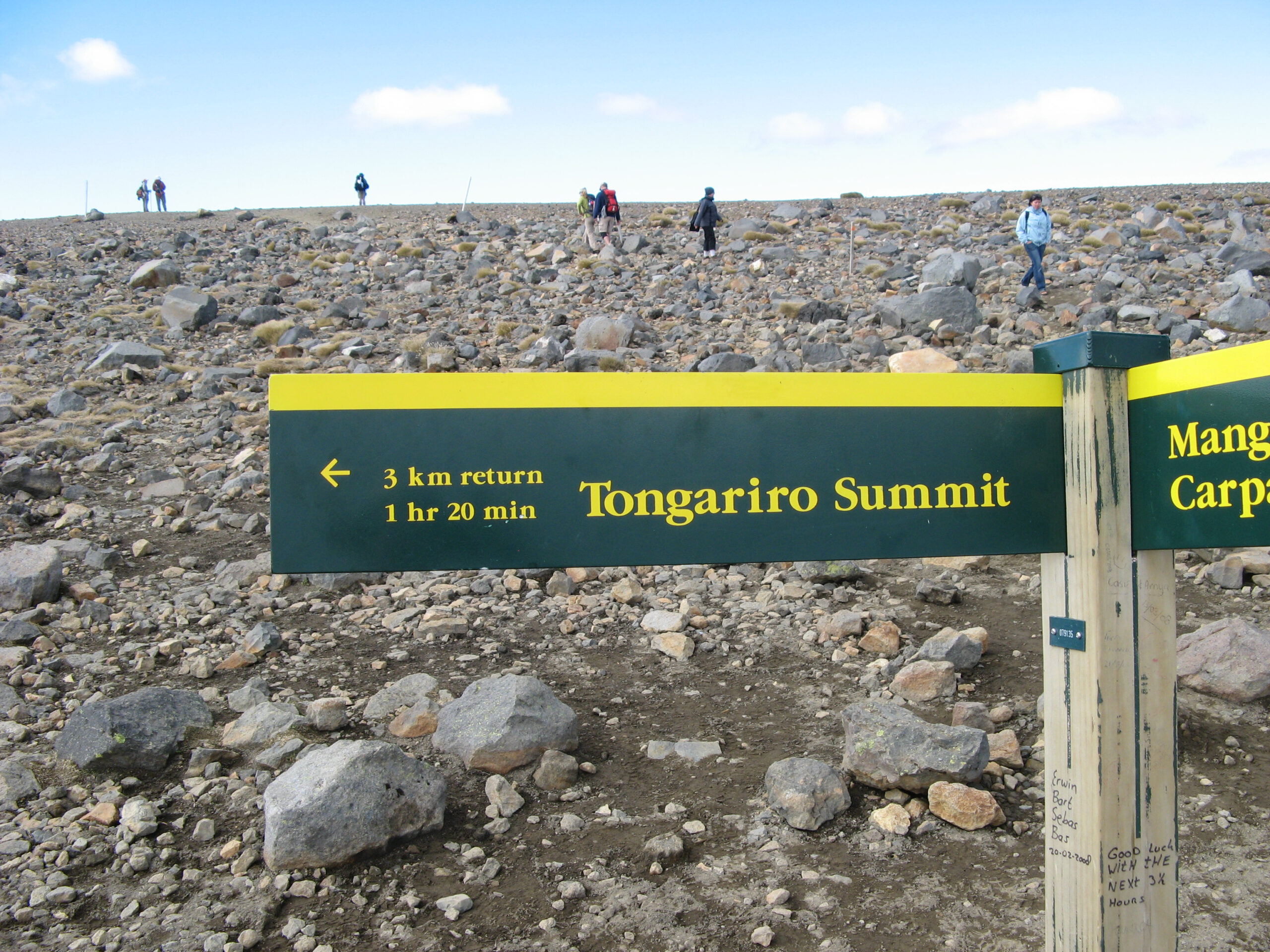 We’d worked up something of a sweat by the time we reached the foot of Mt Ngauruhoe (better known to Lord of the Rings fans as Mt Doom), although, in the thick cloud, we had no idea it was there. We beamed in ignorant bliss as we took pictures next to the sign warning “that was the easy part: it’s much tougher ahead” but failed to stick to the postscript “stick together”. Which was my fault.