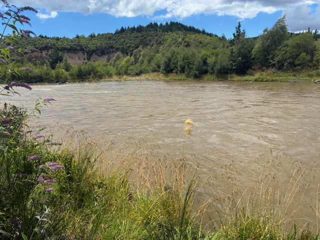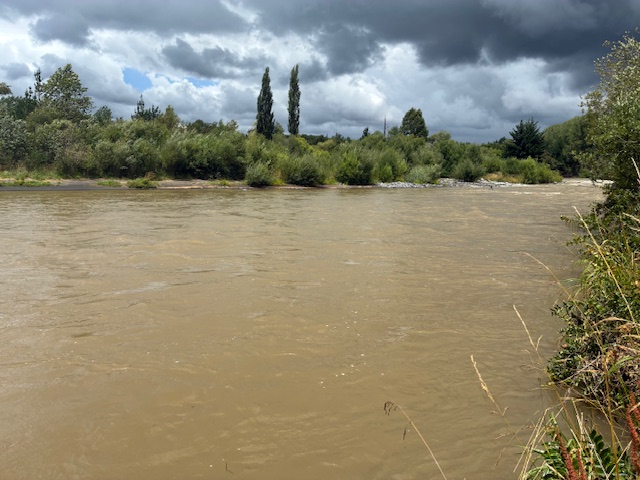 The Judges Pool photos below should illustrate the answer. By 2 pm today the Tongariro was flowing around 35 cumecs when the soupy images were taken.