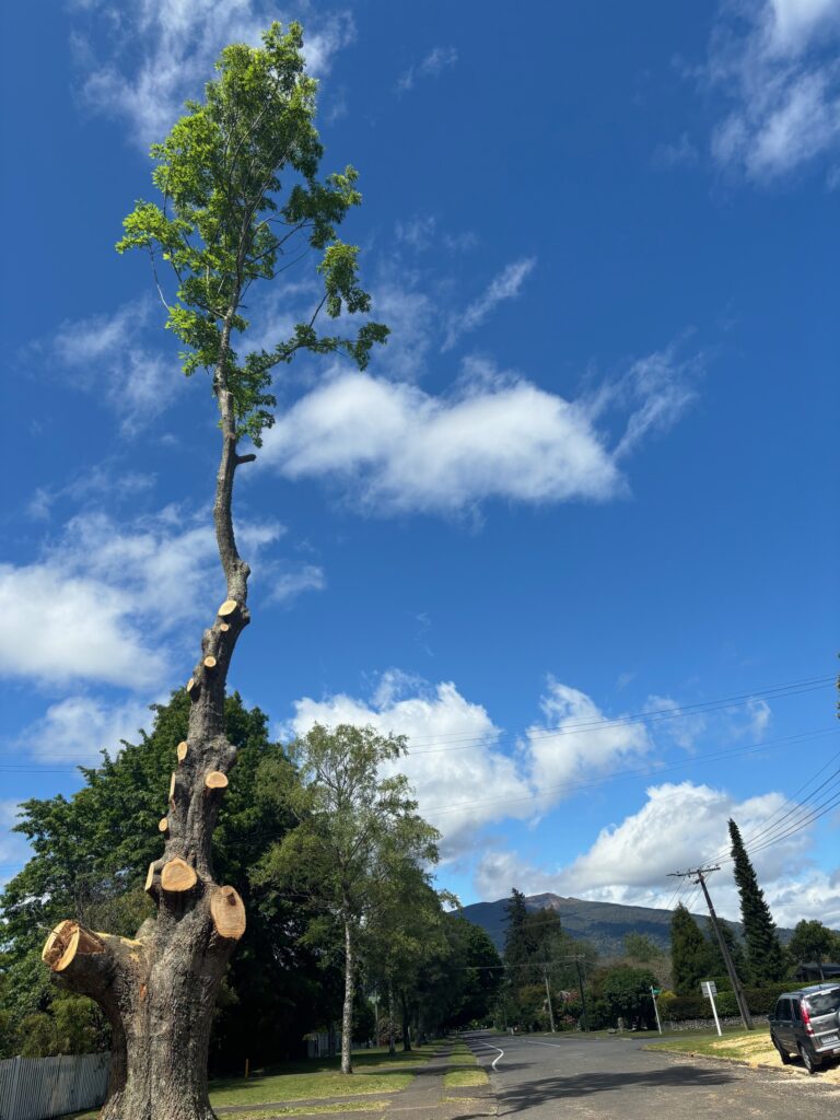 Council’s strategy is finally revealed. Above photo is a local Red Oak specially pruned by TDC and converted to ships and shavings for TRM smokehouse. This is more important than most realise. TRM’s big wheelie bins are full of Red Oak chips that have been drying out since November 2024, when the Toe Paw Council skillfully pruned the old tree opposite on Taupahi Road.