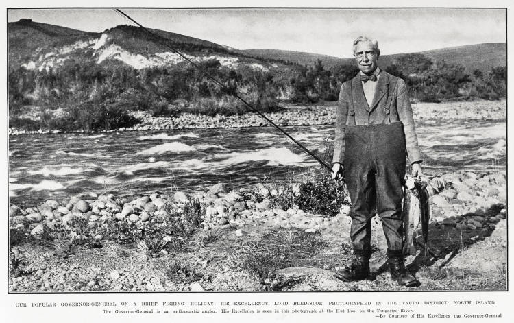 - Angling Enthusiast: Lord Bledisloe and Lady Bledisloe were frequently photographed fishing for rainbow trout on the Tongariro River, specifically at famous spots like the Hut Pool and the Waitahanui River.