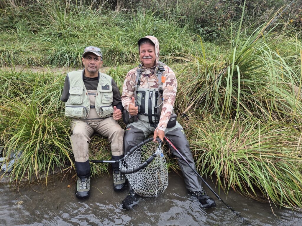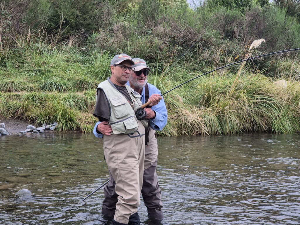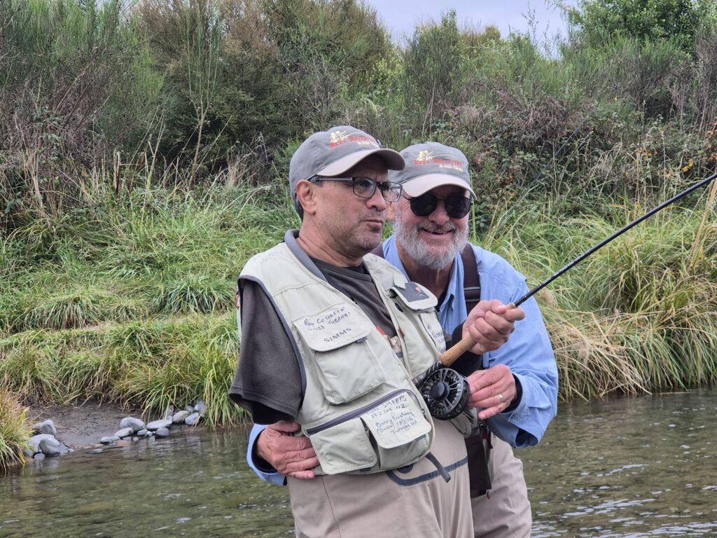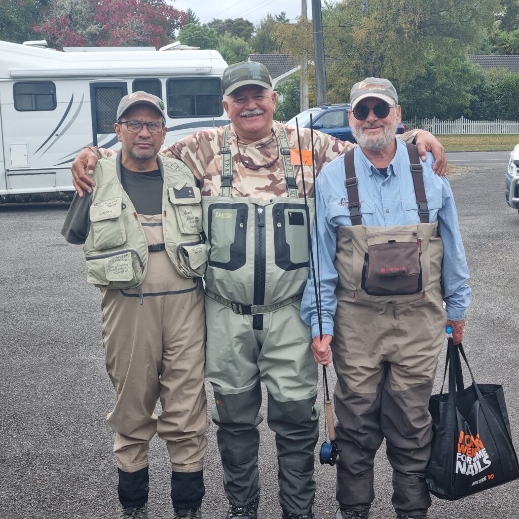 But 2026 retreat threw up an additional handicap to test them further. You may have picked it in the photos. Willy (William Te Wani from Hamilton) arrived with only one arm. Stop right there. This was his first attempt ever at fly fishing. So how can anyone hope to learn the skills of wading, casting, catching, and handling a rod with only one appendage? This shows that after Reel Recovery therapy, these guys have greatly enhanced courage and conviction, as evidenced by their being here, wading in a river, hoping to catch trout.
