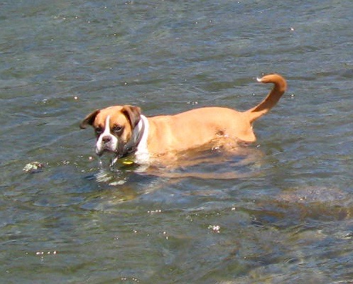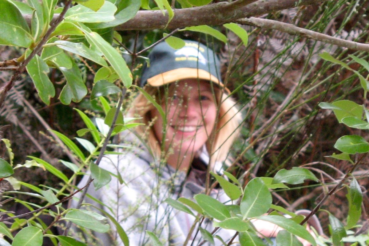 I had worked out roughly where they might be but could not see them even from the opposite side. After walking and wading to my limit I could not spot them. Then I discovered their give-away – definite paw print evidence up the sandy bank heading down river so hoped I was on the right track. Soon after I ended crawling on my hands and knees where it was impossible to stand up or peer ahead through the tight undergrowth. I was just about to give up when – surprise – a dog licked me on the nose. Boof had heard and found me. They were so well disguised in their ‘possie’ that I could have passed them.