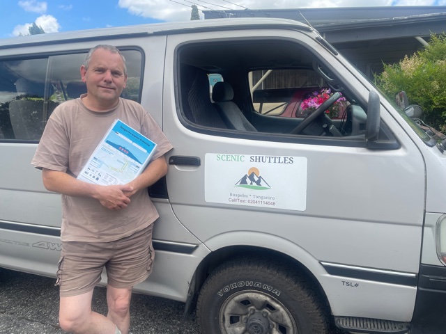 If you need advice on any of the National Park trails then the best person to ask is a shuttle bus operator who is up there every day – do not rely on SWMBO! Contact Colin at Scenic Shuttles for all information on the condition of the trails, weather forecasting, advice on the Department of Conservation policies and the meaning of life – see photo below: phone: 020 4111 4648
