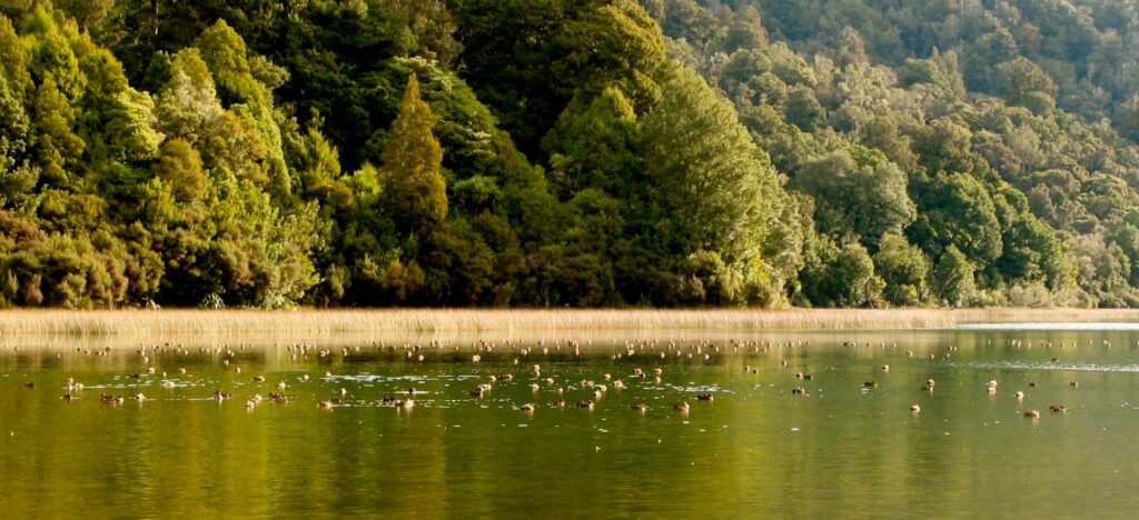 Lake Rotopounamu On the return trip on SH47 stop off at the hidden Greenstone Lake for another two-hour loop walk in virgin native bush – very sheltered on windy days and very scenic.