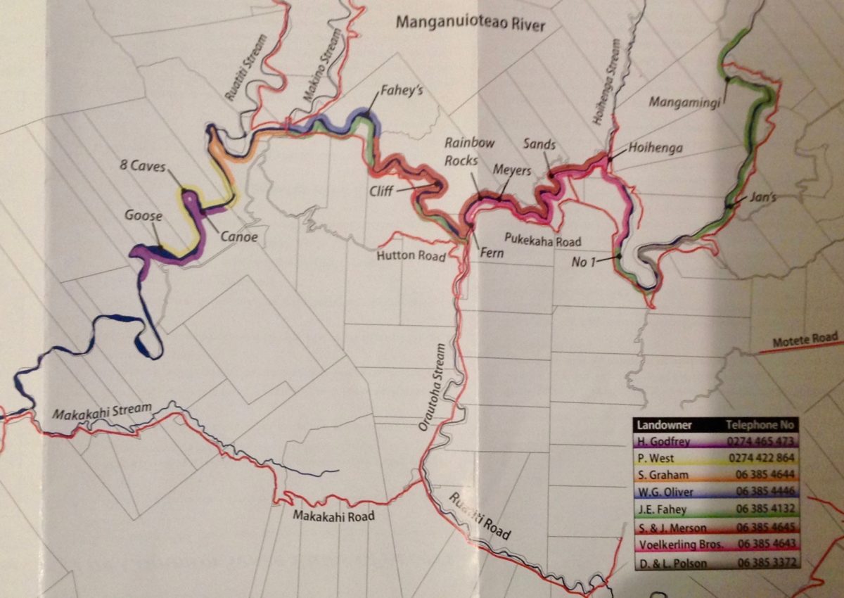 So today we compare what Fish & Game offer their licence holders.  Consider the difference in scale – DOC’s map covers over 100km.  Compare to the brochure for the nearby Ruapehu F&G region together with detailed info of 8 rivers and dams they even provide maps of local farms alongside their river with farmers’ phone numbers available to check on access – see below.  How good is that?  Full marks to the Taranaki Fish & Game Region!