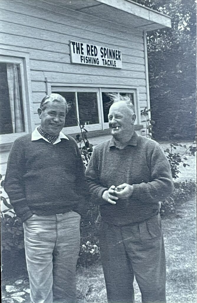 After the Communist takeover of China, a few old China hands moved to NZ, many to Kerikeri. NZ was far from conflict for a traumatised family. (My mother and grandmother had been interred in a Japanese camp in China while Bruno was fighting.) Bruno chose Taupo because it reminded him of northern India in the foothills of the Himalaya where he had hunted and fished. He leased land off the iwi to build the Red Spinner and a small bach next to it. He and Joe worked seven days a week in the Red Spinner tying flies. The workroom was lined with green-painted biscuit tins labelled with all sorts of fabulous names that contained feathers and other materials, but I was absolutely not allowed to touch them.