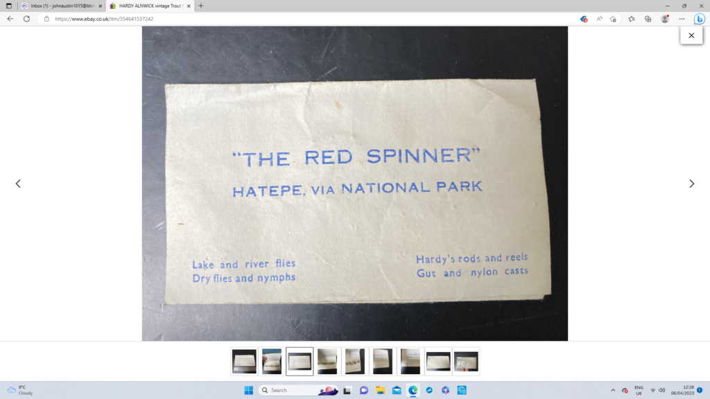 I am an angling historian and live in Durham in the UK. I recently bought a packet of flies that were tied by 'Bruno' Kemball, owner of The Red Spinner Tackle Shop at Hatepe. He was actually called Arnold Vero Shaw Gerard Kemble, so where 'Bruno came from is a mystery He was born in India in 1906 and died at Taupo in 1985. From the information on your website he would appear to have been quite a character. I am thinking of writing an article about him to hopefully be published here in the UK. Would it be possible to use some of the photos on your web site. I have attached photos of the fly packet and contents to your email address, that I didn't notice when I typed this out!
