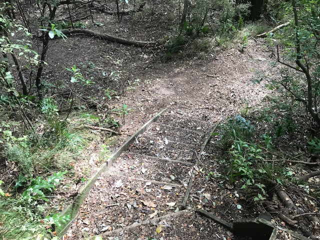 Above right is the old track where it emerged on the river bank and needed wading to reach the main stone beach.