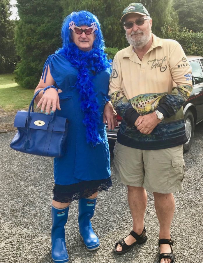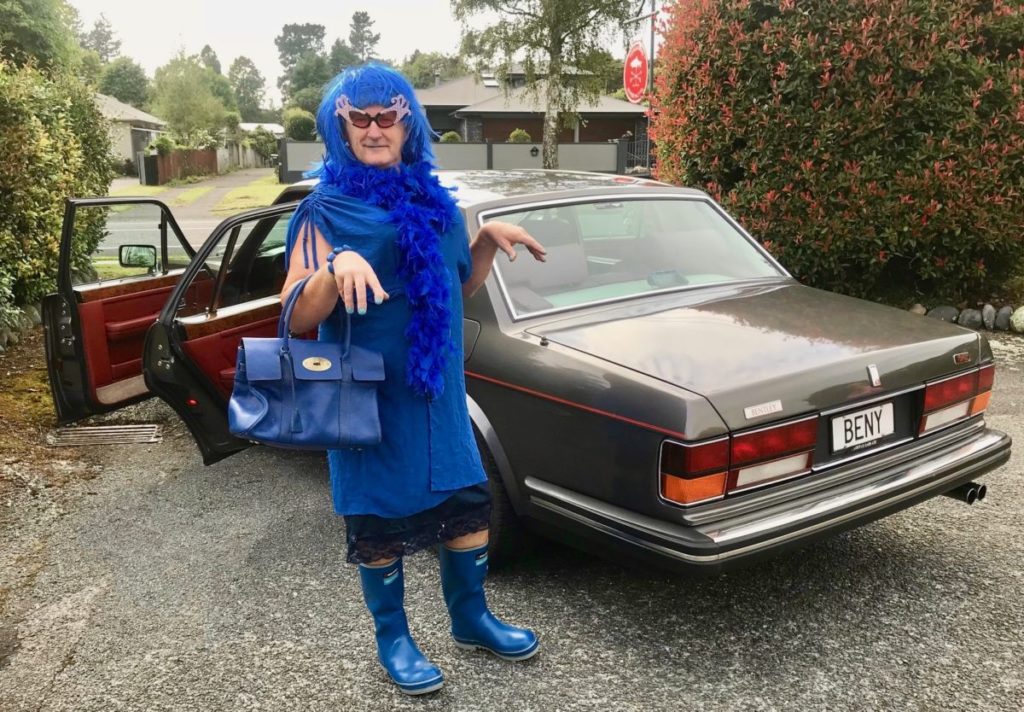 Dame Didymo Davina – NZ’s 1st mega star of Conservation only ever dresses entirely in blue – the same colour as clean water and lectures anglers about keeping their tackle clean darlings. Any anglers not complying with the CHECK CLEAN DRY process will get a smack around the head with Her handbag. If that doesn’t work She will put them across her knee and give them a jolly good spanking!Images are with Her driver, Murray Cullen, on their way to Lake O. With her on patrol, who could dare refuse to comply with the CCD message?.