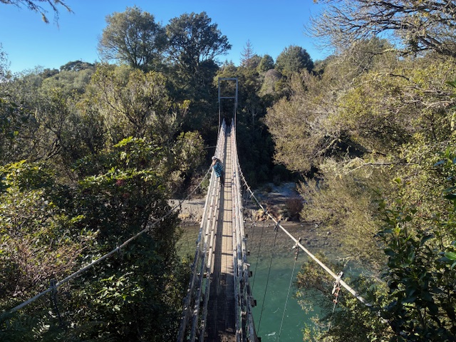 Initially we hoped to explore the TRB up to the Poutu Pool which required a tricky side stream crossing over the bypass above Waddells Pool. It may be a good time for DOC to review their “health and safety standards” for this access bridge – see photos. A handrail for older fishos is needed. It is surprising it survived the floods at all.