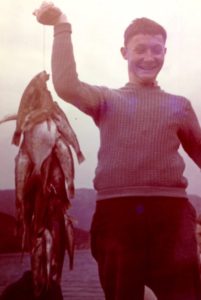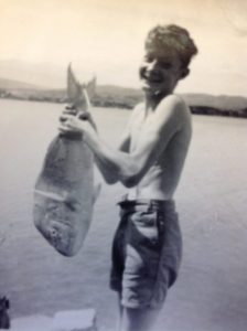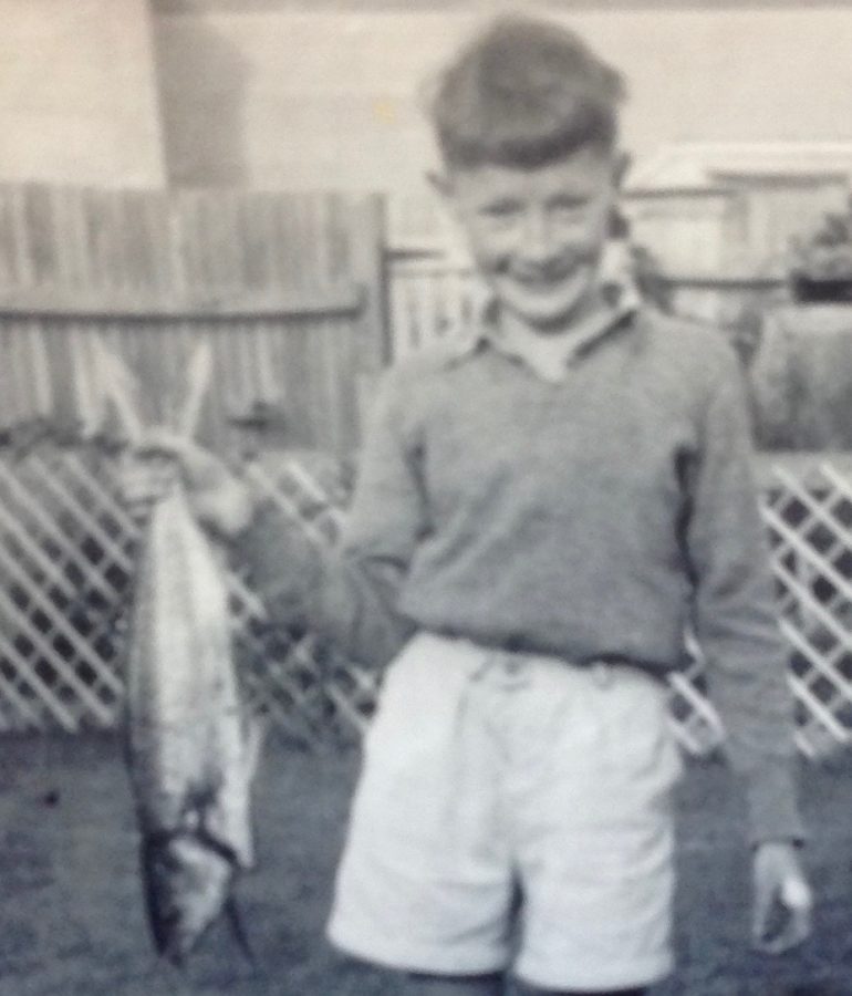 Can you remember your first fish?  My first photo evidence is the image above right.  Taken in May 1955 – a monster trophy kawhai caught on a hand line near the mouth of the Hutt River.