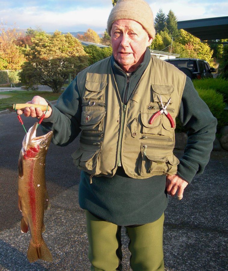 Some time later they returned empty handed to find the ol’ boy asleep in the chair with two fresh landed Rainbow trout beside him….Then we received the following email – SWMBO thinks it is priceless.