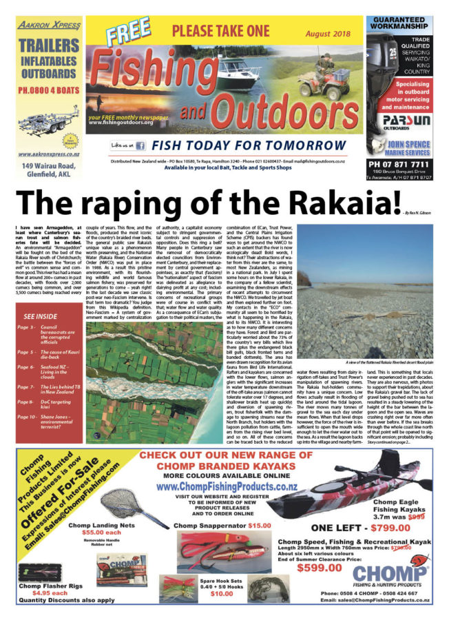 These other publications rarely pick up on issues threatening the public’s sport. Yet if DOC and mad scientists get the last deer by either chemical or crazy science, there will be no need for a hunting magazine. Similarly if rivers run dry or are polluted and sea fish stocks plundered by company fishers, then trout fishing and saltwater fishing as we know it will be gone. Fishers will all be gone.