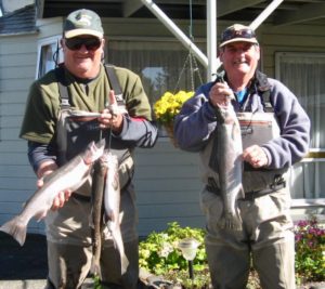 These limit bags are typical of what anglers can expect at the moment but the spawning runs are expected to increase through May & June. Images on right are with Peter – who claims to be Ian’s fishing guide…