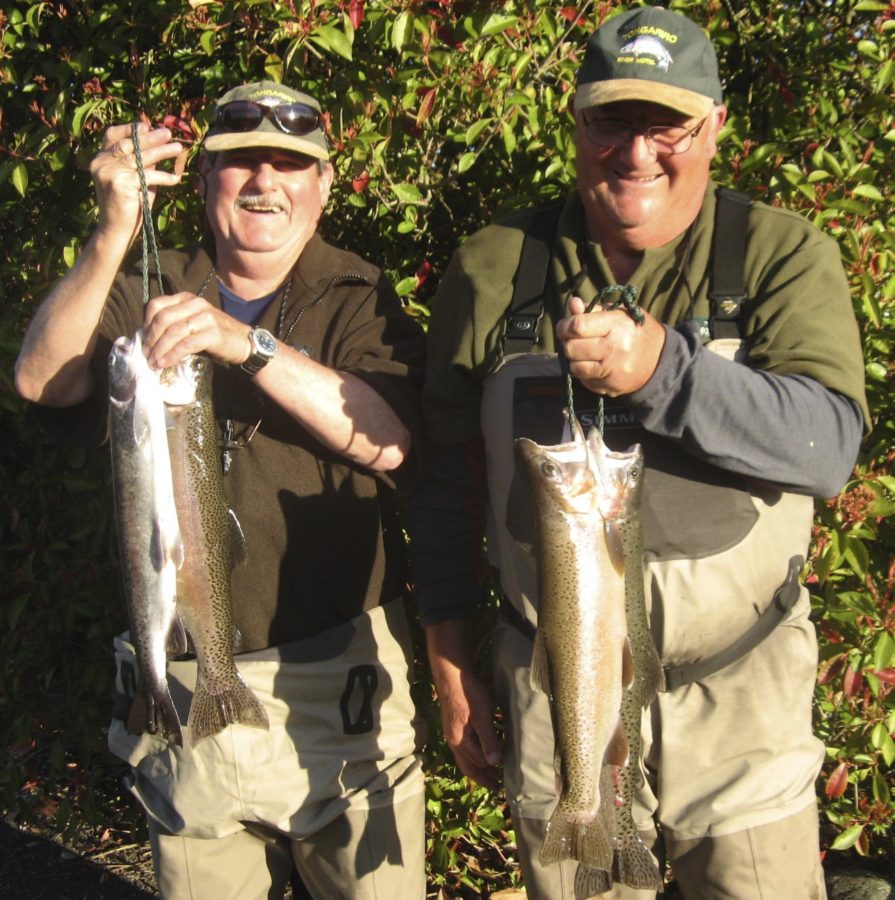 As seen in the photos, Ian was wearing his TRM lucky hat, so he could hardly fail. But to rig up he says he had to hide behind a tree for protection from so many voracious wild Rainbow trout.