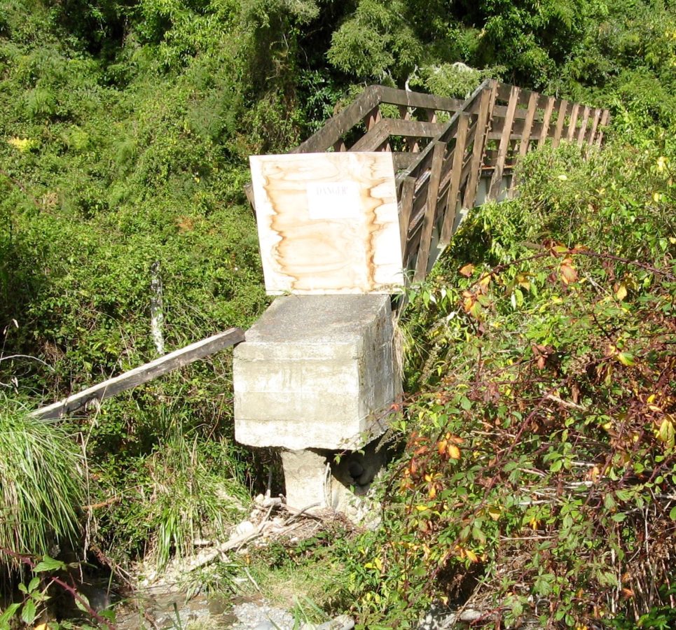 It was not too long ago they closed the gate and anglers had to walk from the main road car park across the Poutu anglers access bridge (see July 2007 photos on left – now removed up to the National Park somewhere near Whakapapa) past the Breakaway Pool – it took an hour just to walk up to the limit pool.  Then they had to carry all the huge trout back…  Anglers must have been younger and much fitter (or more desperate?) back then.