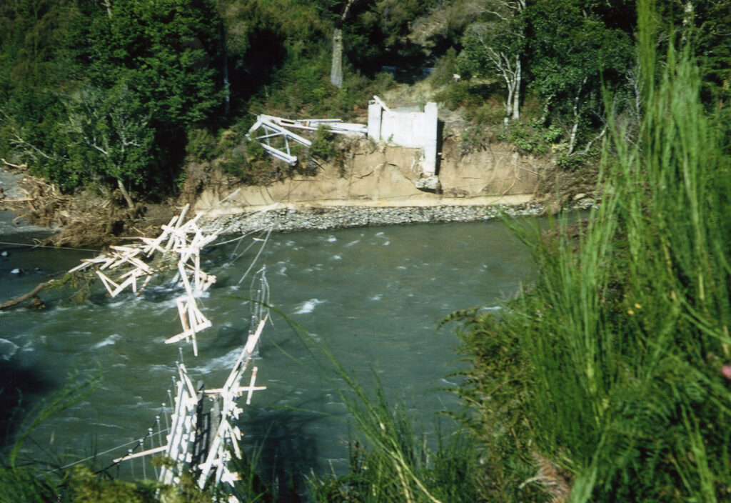 A comparison of aerial photos taken in June 1958 (after the large flood) and December 1984 allows identification of changes in the river position over that period… From Sand Pool to Breakaway Pool, 1.5 km downstream, the river scoured its left bank and moved some 20-30 m in a south-west direction towards SH1. For the next 1.5 km from the Breakaway Pool to Red Hut the river eroded its right banking moved a similar distance to the north-east. It reformed an old 800 metre long shortcut from Poutu Pool to the footbridge upstream of Red Hut Pool creating a 300 m wide island. This “new” shortcut was the main channel of the river back in the 1920’s. etc…
