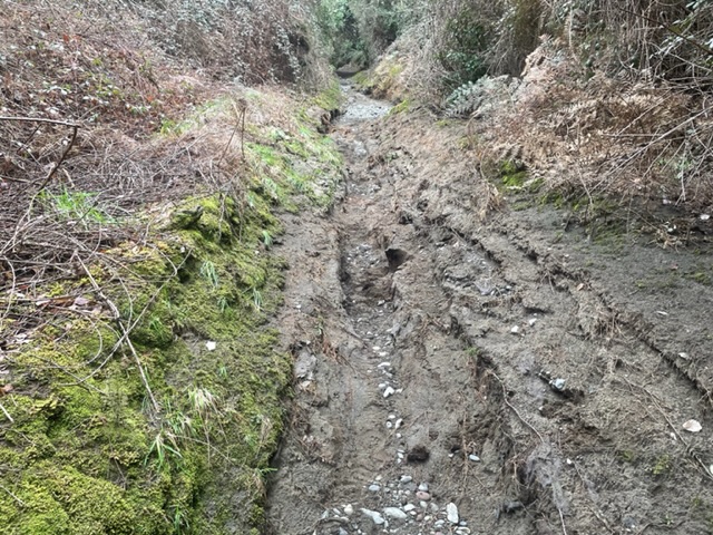 The images may not adequately portray the extent of the washed-out track but the climb down and out again is now more difficult for those older anglers – so you are warned…