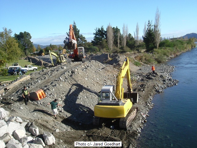 On right you can see the impact of the “hydraulic bulldozer” which has re-created the old river bed.