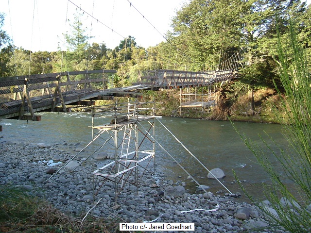 Now for some real history – this was the original anglers access bridge across the Poutu from SH1 to join the track to the confluence with the Tongariro or to provide access up river to the Breakaway Pool. Photo was taken from the olld SH1 in 2007 when the bridge was blocked off and track overgrown as anglers could drive up to Big Benad, Boulder, Blue, Sand, Whitikau or Fence Pools. DOC removed the bridge which is now somewhere up in the Tongariro National Park.