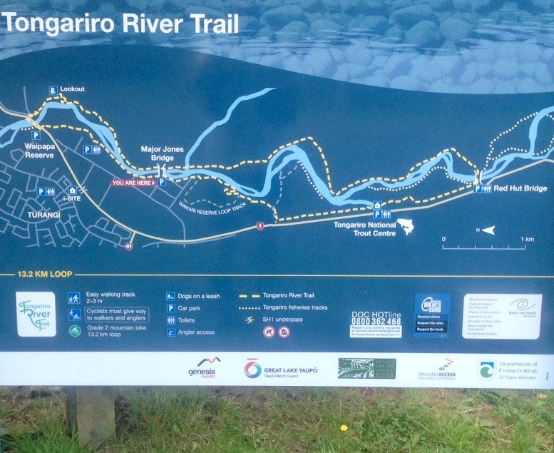 The Tongariro River Trail provides a choice of circuits which is so important for planning.  This allows bikers (and walkers and anglers) to leave their car on whichever car park they choose and return without going over the same track.  Much better than any other bike trails in this region, none of which are loop tracks.  Whilst there are so many wonderful bike trails such as the easy tourist tracks such as Lions Walk, Rotary Ride, Waikato River Trails, Craters of the Moon, Timber trail, Great Lake Trail (W2K, K2K), or more difficult technical rides like 42nd Traverse, Tree Trunk Gorge, Waihaha Trail, none are loop tracks.  They all involve ‘there and back’ rides or planning is necessary to leave one vehicle at the start and another at the finish or arranging pick up by boat or shuttle service.  For tourists that is so inconvenient.