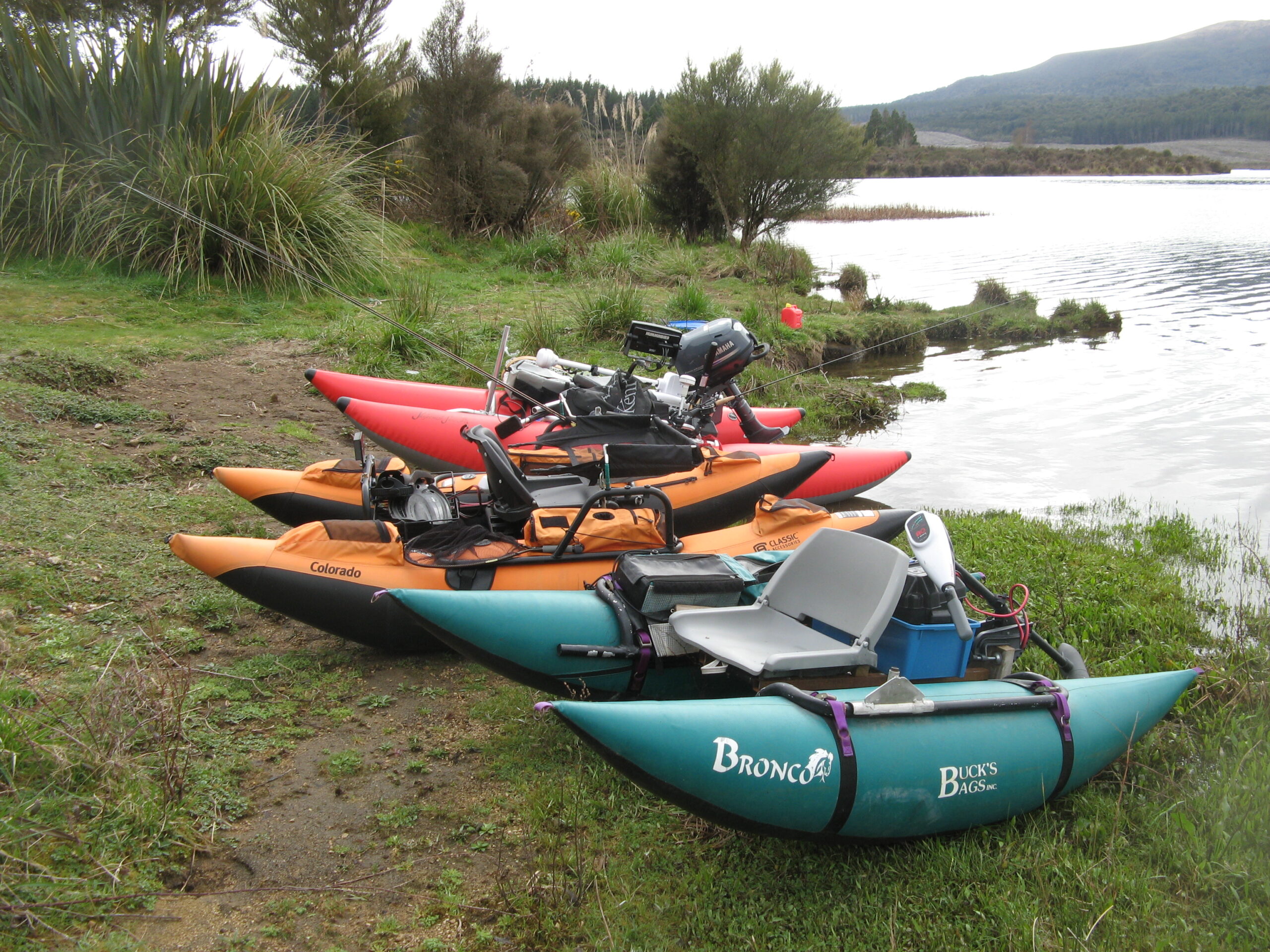 They fit in any rental car boot, they are inflated by a pump-fed off the car battery, they are light enough to be walked to the launching ramp, they are easily rowed and highly maneuverable, the seat has an inflatable back-rest – so important together with the foot strap to use as a brace making it more comfortable for hauling in BIG trout, the oars are attached, stripping apron attached, foot fins available, if I say anymore I will have to send a bill to INCEPT at Taihape for promoting them! Their promo is below… There is usually a wide variety of catamaran-style watercraft but for simplicity of use and transport, they are the ideal Lake O raft.