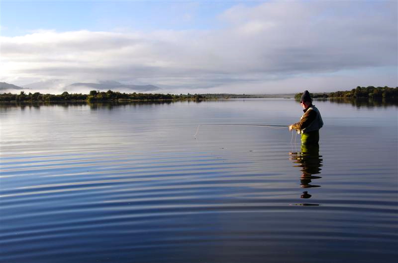The summer dry fly fishing on the lake can be spectacular at times too, either from boat or shore. Spinfishing is also very effective, either from a boat or the shore.