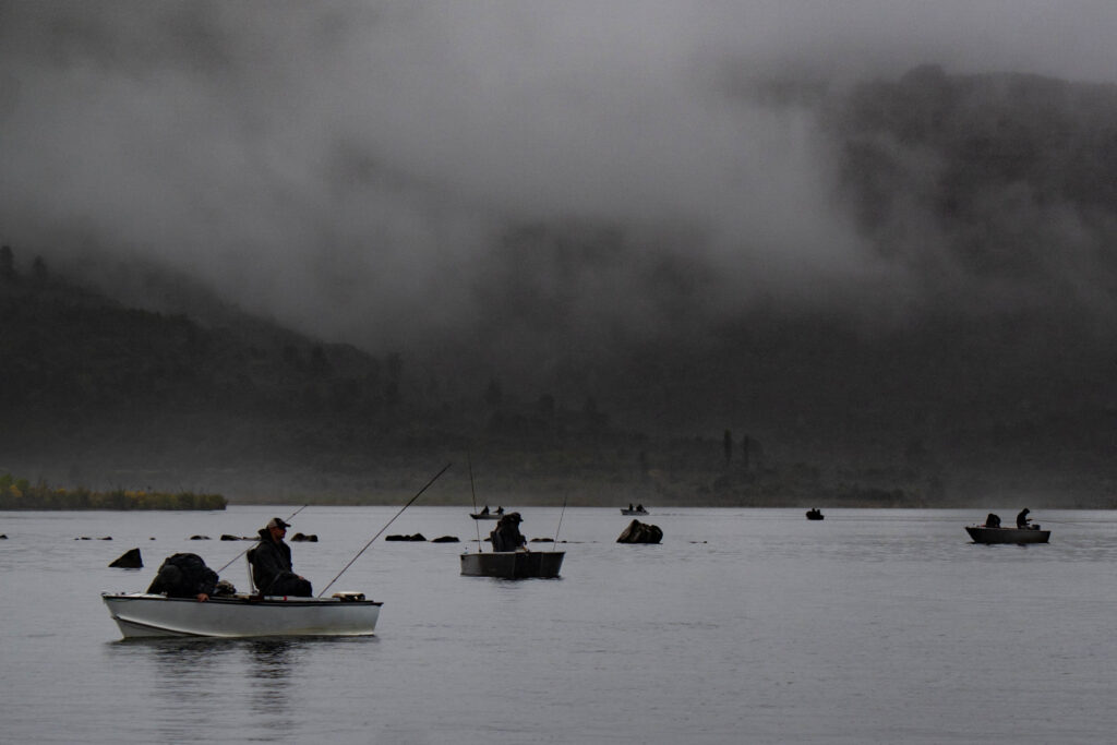 Another reminder that Lake O will be closed in February so get there now. TRM has two “water-strider” rafts available for guests. They are so simple to inflate, very stable, easy to paddle, more comfortable with a backrest, and can glide across the shallow weeds where the trout hide. See the rise behind the angler in the photo below.