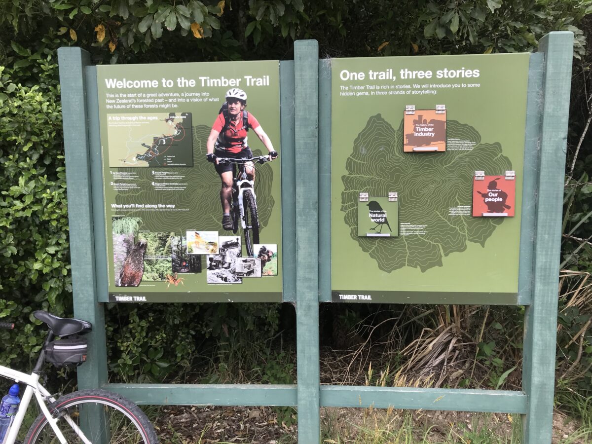 To indicate what Turangi needs to compete with, below are photos from tourist information boards and signage on three other bike trails we completed over the summer – The Timber Trail, Coast to Coast up north and the W(h?)anganui River trail.