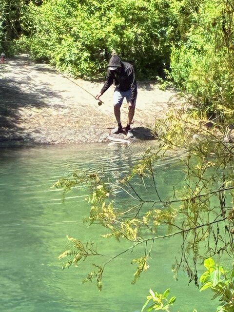 During our lap around the town pools we spotted or spooked trout in every pool or riffle. See, it must be that easy.
