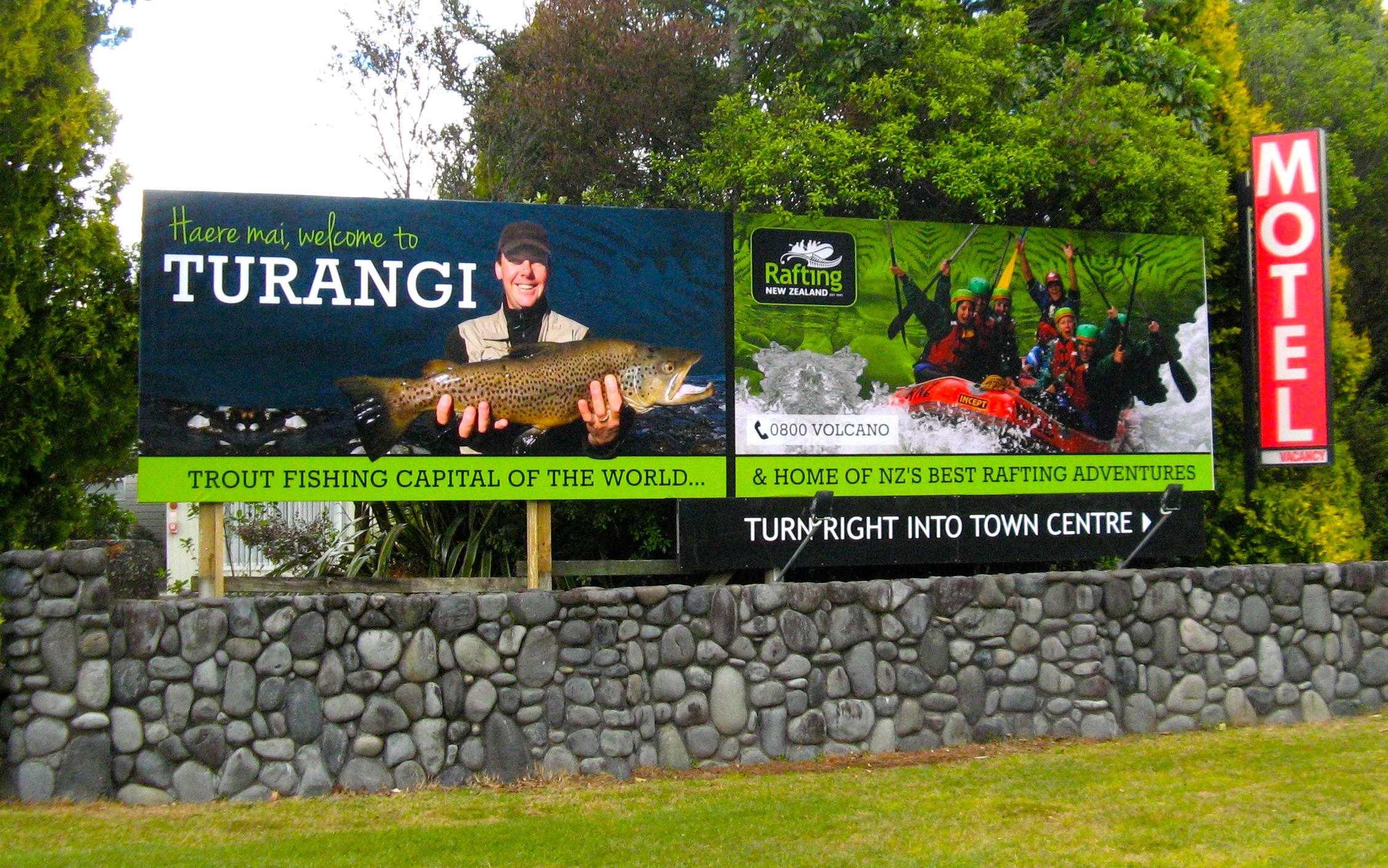 Note that this was the original reason for the sign – to welcome tourists to Turangi – Trout fishing capital of the world – as back a few years there were no signs embracing the Tongariro River.
