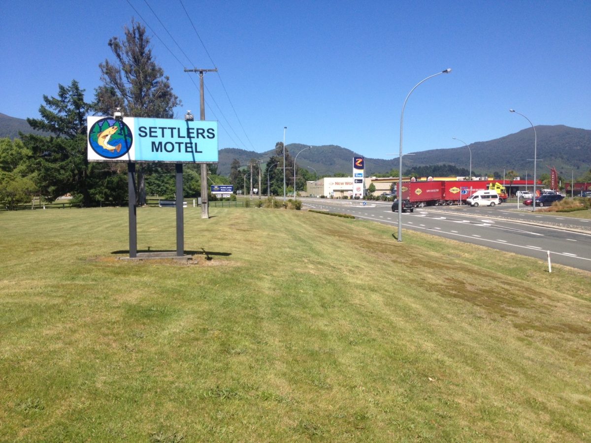 As are the other motel signs erected on the SH1 road reserve while TRM’s offending corner sign is entirely on private property.